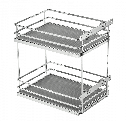 Двухуровневая боковая корзина MOVIX PRO в модуль 300 мм (бутылочница) без направляющих, хром (плоский прут) - выдвижная система хранения, устанавливаемая в нижний модуль кухонного гарнитура. Корзина изготовлена так, что в нее удобно ставить бутылки с напитками и жидкими продуктами питания, поэтому она также называется бутылочницей.