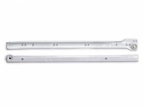 Роликовые направляющие GTV 0,9х300 мм, белые - механизм неполного выдвижения для мебельных ящиков, отличающийся простотой конструкции. Роликовые направляющие подходят для бюджетной мебели, когда важны минимальные затраты на фурнитуру и не требуется расширенный функционал системы выдвижения.