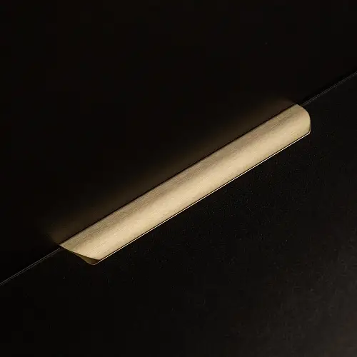 Ручка мебельная алюминиевая HEXA 192мм/225мм, светлое брашированное золото - популярный вариант лицевой фурнитуры, для которого характерна простота конструкции и высокая надежность. При установке ручка накладывается на торец фасада.